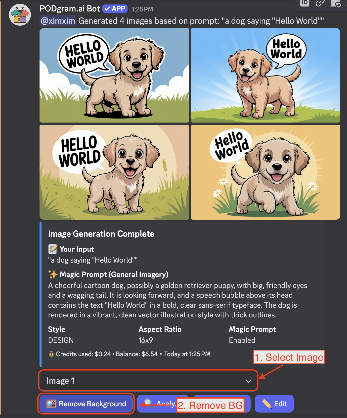 After generating images with the /imagine command, you can remove the background from any of your images in just two simple actions: